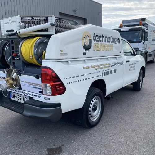 - Les équipes utilisent un fourgon équipé avec le matériel nécessaire (ordinateur, robot, groupe électrogène, compresseur, escargot), une unité UV avec touret de câble de 300m.